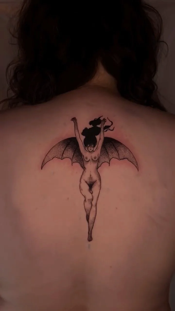 David@pitypostcardDavid loves to tattoo illustrative weaponry and cute anthropomorphic figures. He specializes in heavy blackwork, dusty pink accents, and cool, crisp whip shading. To book follow the link below. Book with David